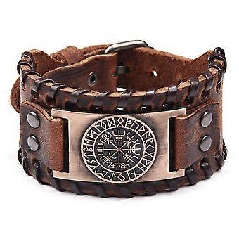 Brown Viking Bracelet Adjustable Cuff Bangle Wristband with Vegvisir Compass Norse Amulet Celtic Pagan Jewelry