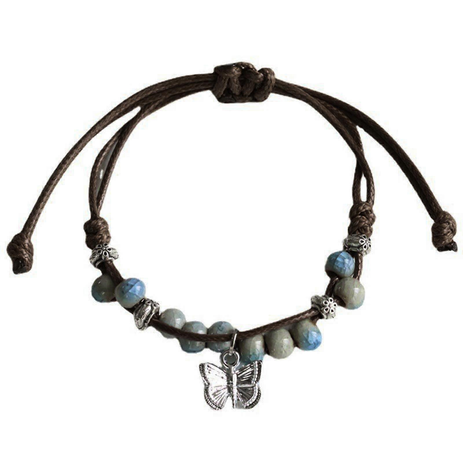 Unique Chinese Style Ceramic Beaded Bracelet Adjustable Length Bracelet featuring Delicate Butterfly Pattern for Women