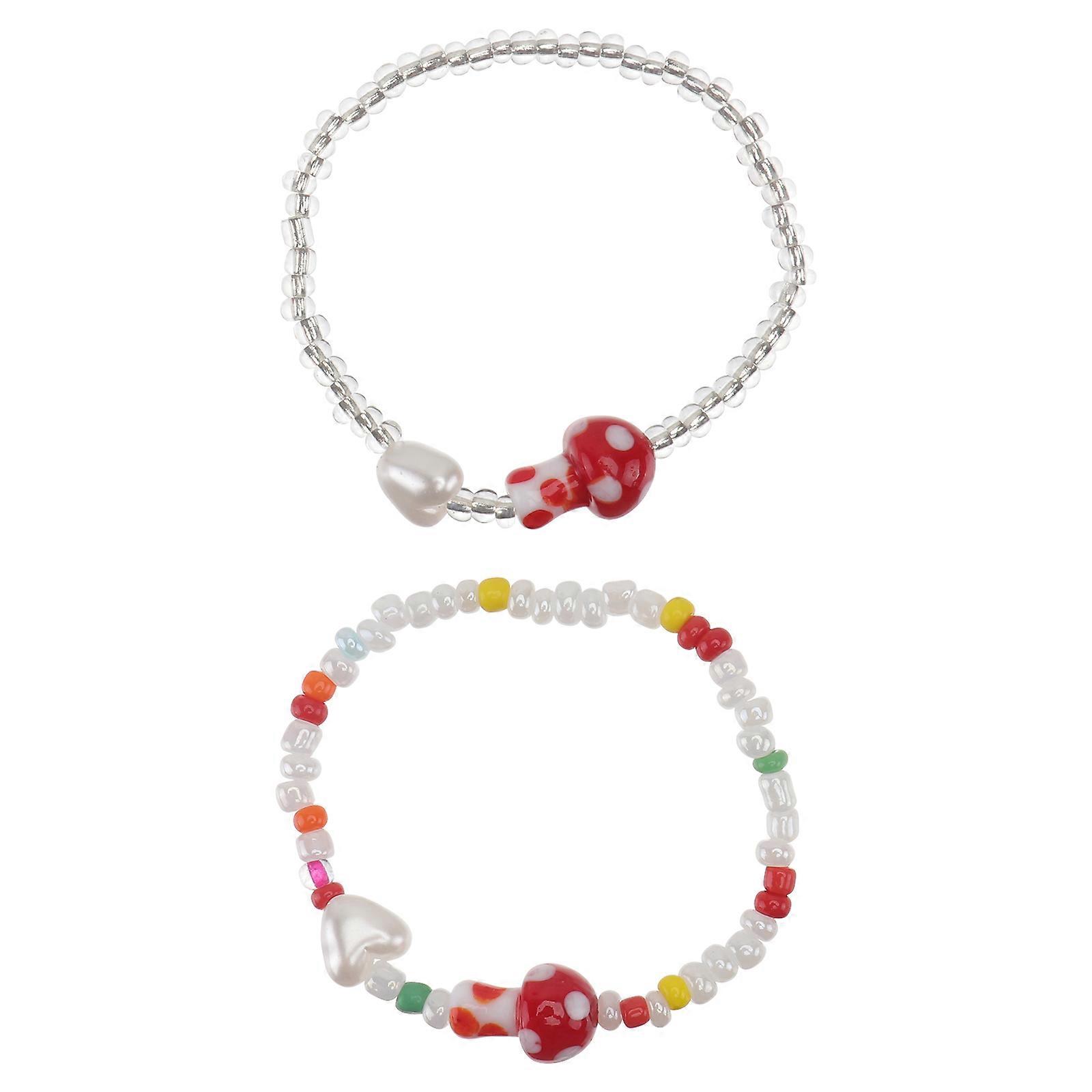 Mushroom Crystal Beads Wristband for Girls 6Pcs Creative Elastic Bracelet