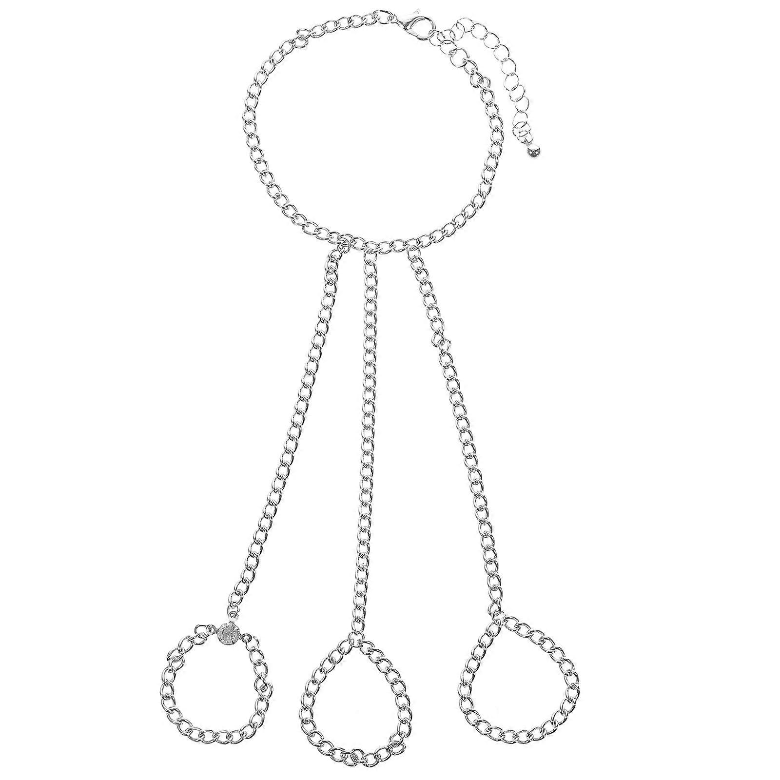 Hand Chain Finger Ring Bracelet Jewelry for Women Girls Silver 21x10cm Fashion Accessory 1Set
