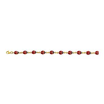 14k Yellow Gold Enamel Ladybug Fancy Bracelet, 7"