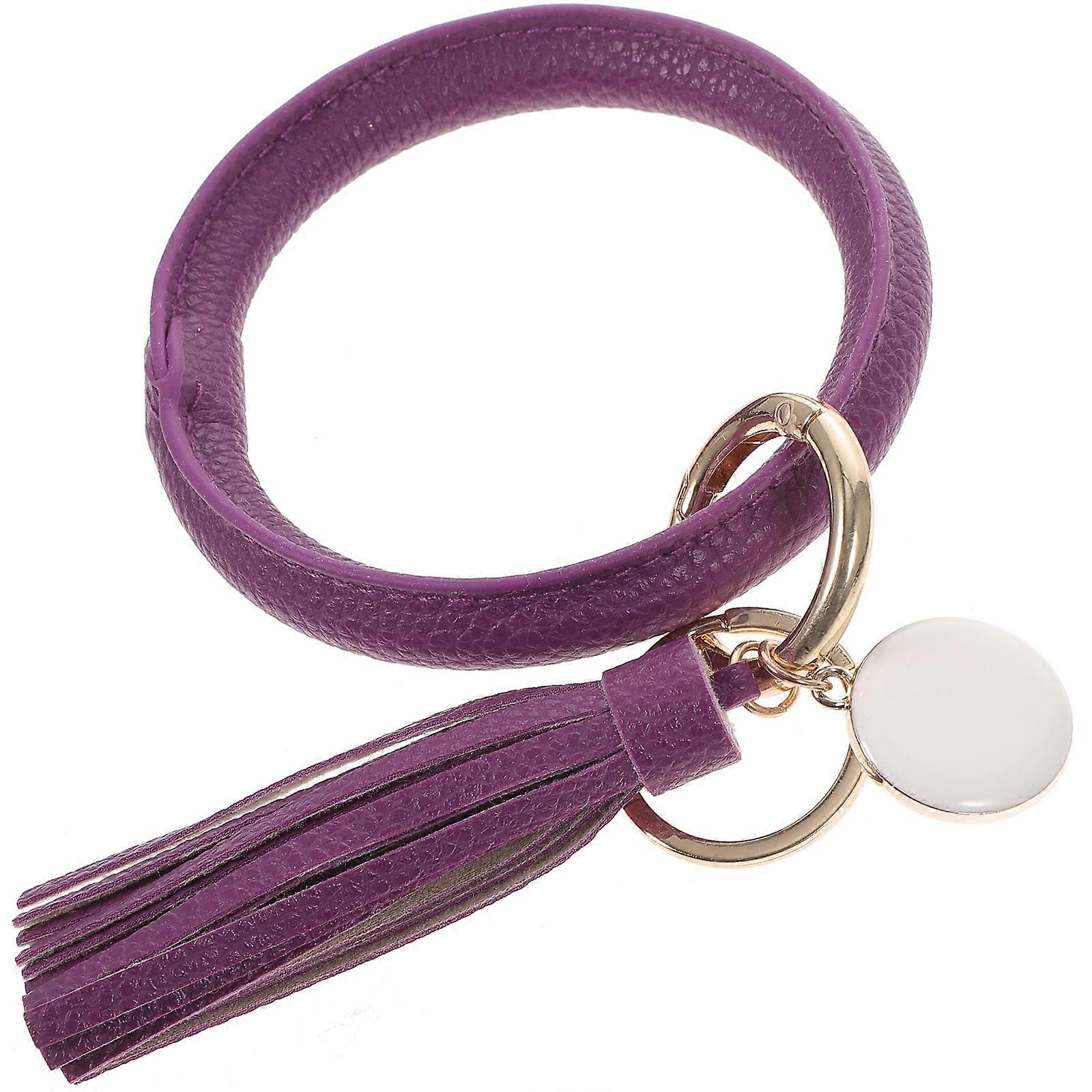 This is a circle bangle bracelet with tassel keychain. Made of PU and alloy, these bracelets keychain will be the best accessory to organize your car key, house key or your mini wallet. The bracelet size allows easy to your wrist and even arm. Features -Color: Violet -Material: PU alloy -Size: 19.80X8.00X0.50cm 7.78X3.14X0.20inch - Our bangle keyring is , high performance but price is more reasonable. - Also can be a good gift choice for your friends, they will like it. - Multi-purpose delicate design, it matches with the many kinds of clothes styles. - Applicable to a variety of scenes, such as bangle, keyring, decor etc. - Our product could last for a long term, durable enough. Package list: 2 x Bangle Keyring