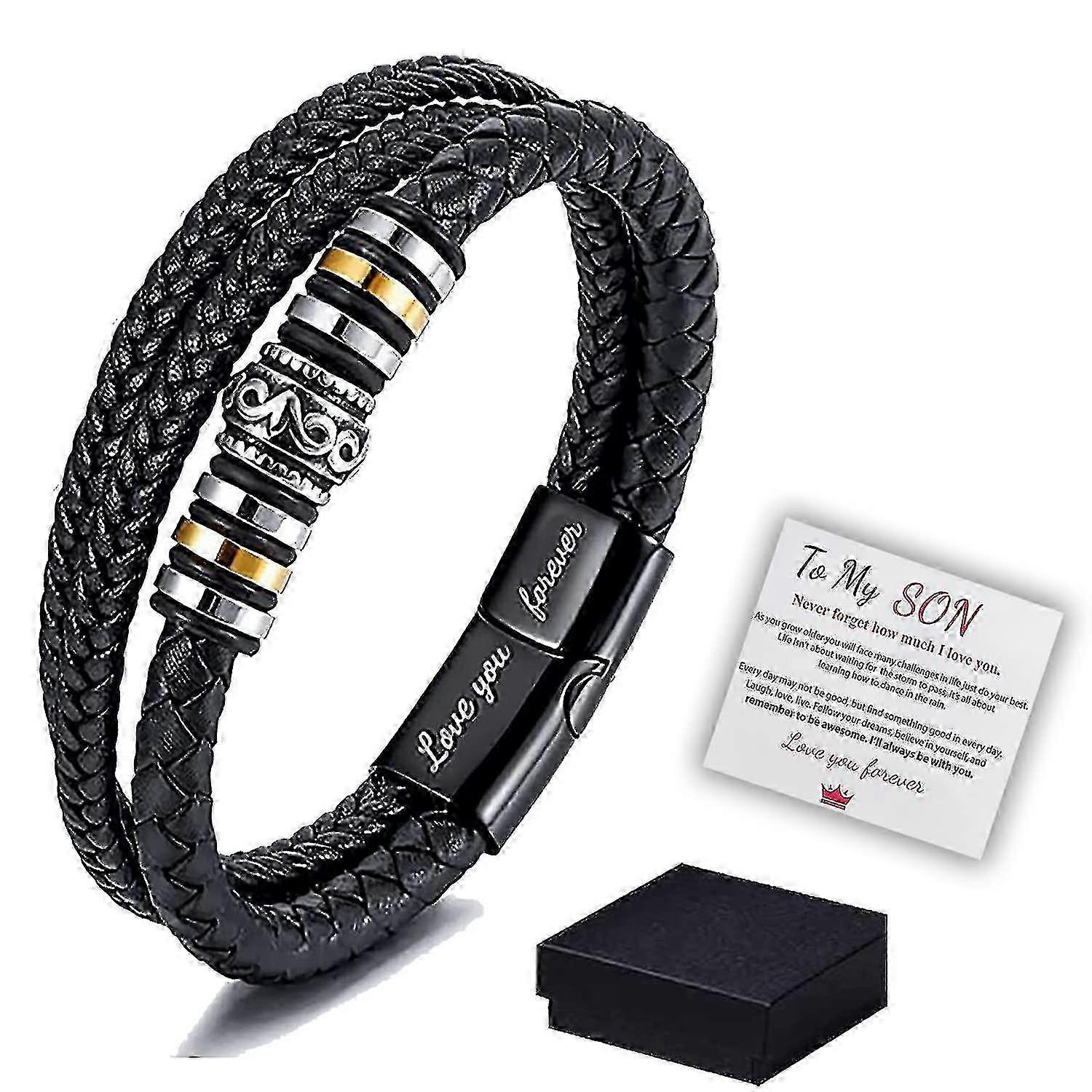 To My Son - Love You Forever Braided Leather Bracelet, Mens Bangle Wristband with Gift Card