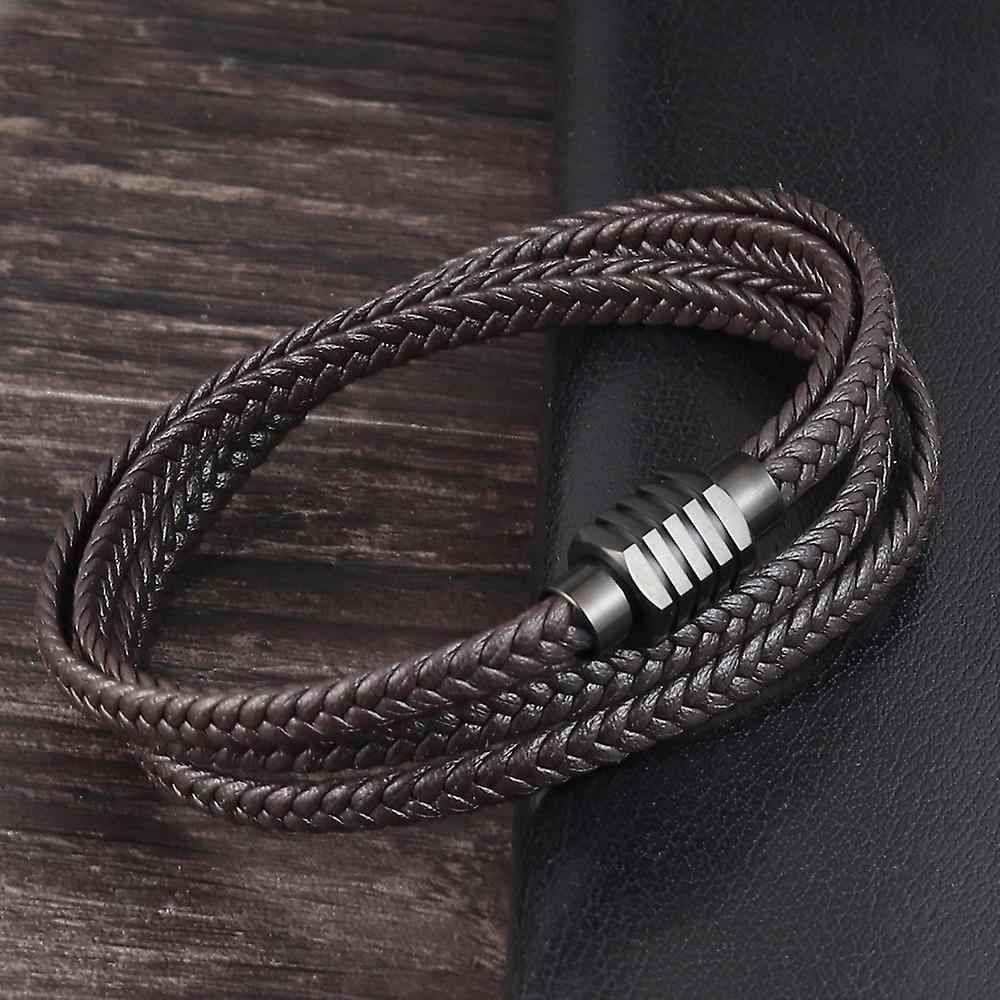 Black Leather Bracelet Men's Multilayer Stainless Steel Leather Braided Bracelet Bracelet
