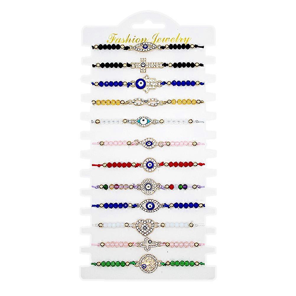 This is a set of blue evil eye bead . It is helpful to prevent misfortunes and happening in life. It helps to maintain in your life and protects you from maliciousness. Adjustable string design to effortlessly slipping on and off as you go about your day. Features - Color: Assorted Color. - Material: Alloy + Crystal. - Size: 20.00X2.00X2.00cm/ 7.86X0.79X0.79inch. - Adopted premium crystal and alloy material, it is practical and durable for long time use. - Comfortable to wear, they can easily fit your wrists or ankles snugly to create charming looks. - It is a nice addition to your costume, bring extra charms to your appearance. - It keeps you from bad , hanging them in your home can keep your surroundings from evil. - It can be used as a good gift for your family and friend in any occasion, and they will like it. Package list: x