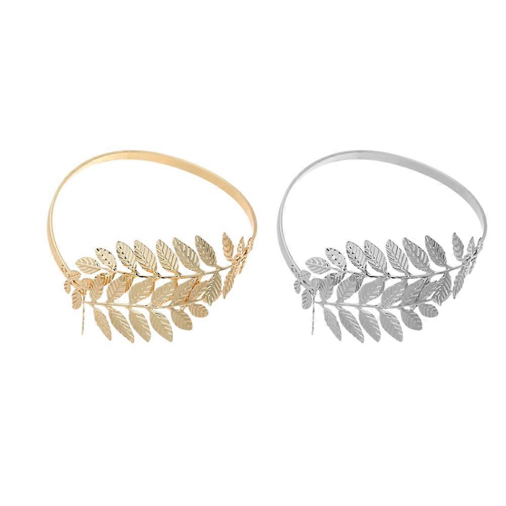 Metal Armband Leaf Bracelet Punk Arm Accessory for Women Golden 2Pcs