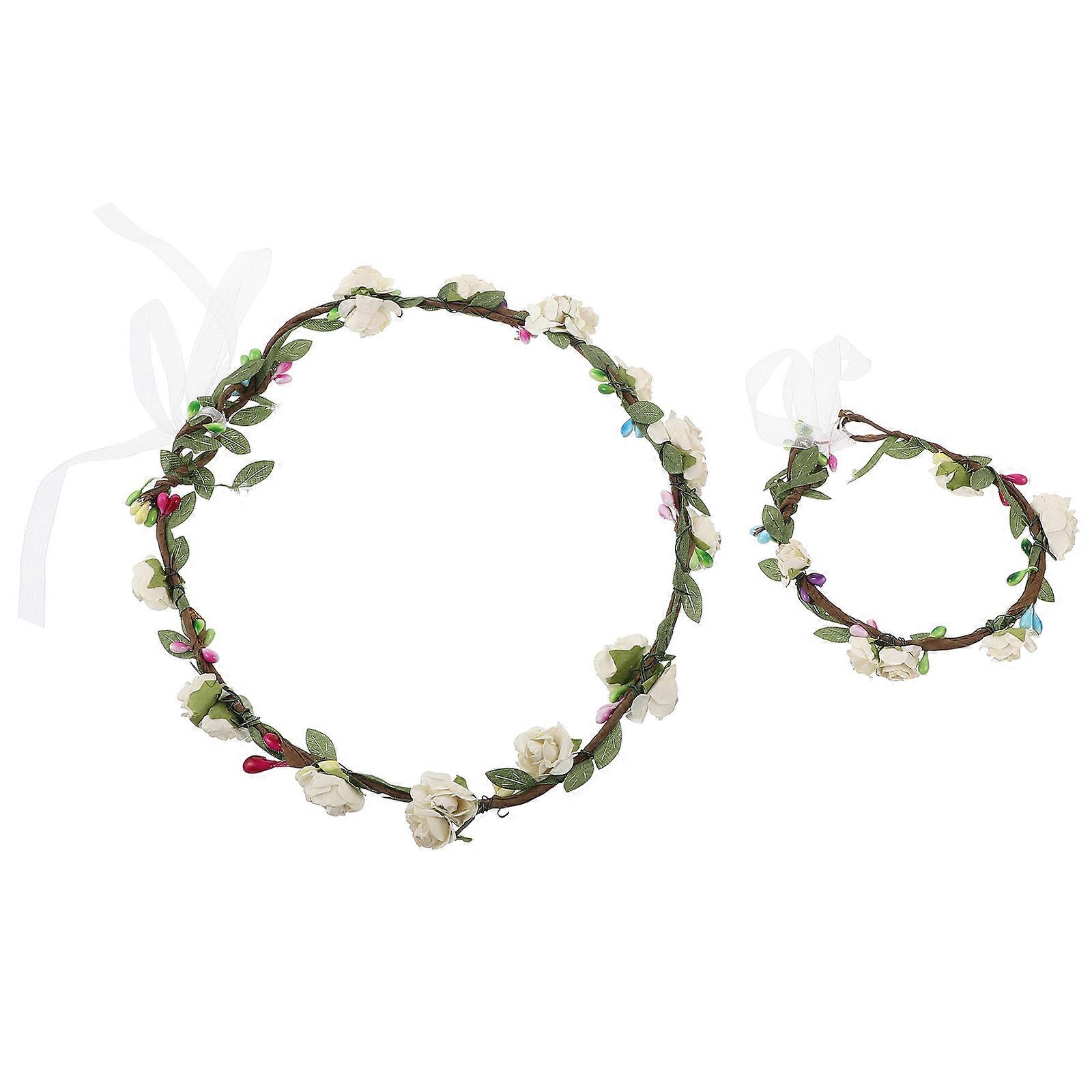 Bridal Floral Headband Flower Wristband Durable Long-Lasting Use For Women Brides 2Pcs White