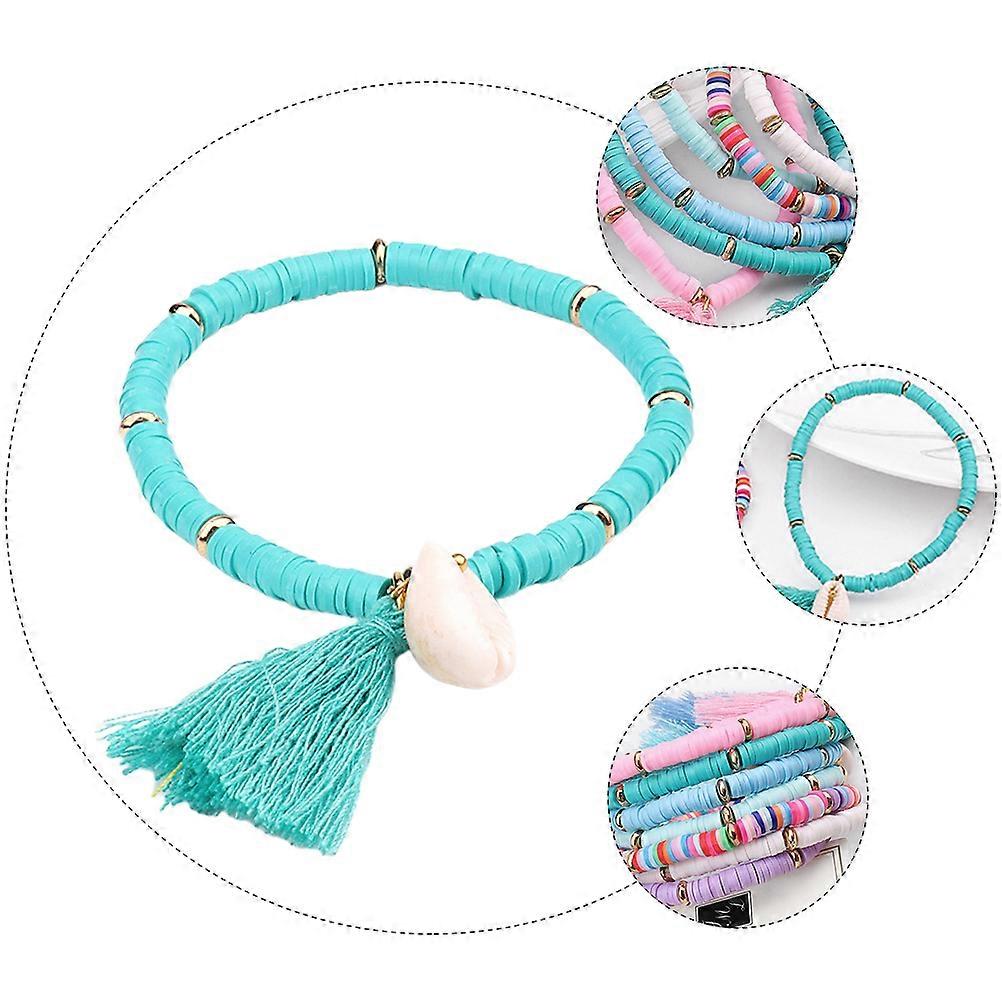 Green Polymer Clay Tassel Bracelet Bohemian Style for Wear Vintage Fashionable Hand Ornament 1 Pc