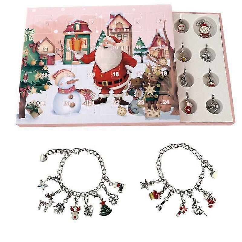 Christmas Calendar Gift Box Bracelet Diy Cartoon Reindeer Santa Claus Children's Bracelet Set