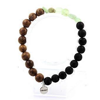 Green Kyanite Bracelet from Brazil + Matte Black Onyx Beads + Wood 8 mm