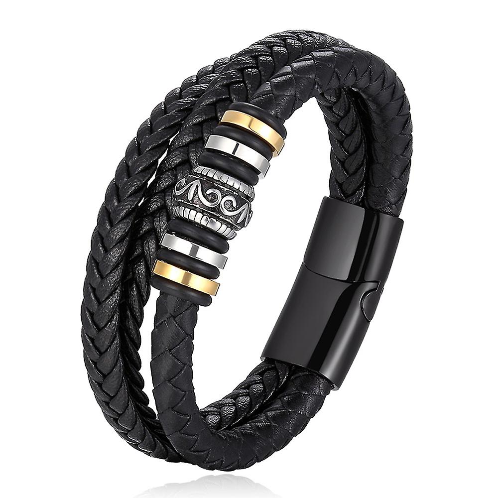 Leather Hand Braided Bracelet Genuine Leather Braided Multilayer Men's Leather Bracelet Vintage Stainless Steel Leather Cord
