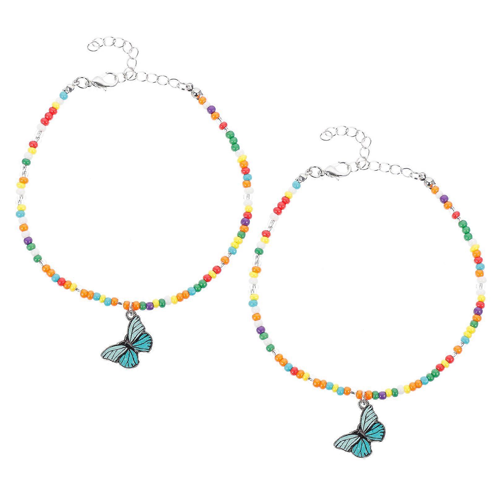 Charm Anklet Beaded Ankle Bracelet Ethnic Style Foot Jewelry Adjustable Fashion Accessory 28CM Rice Beads 2Set