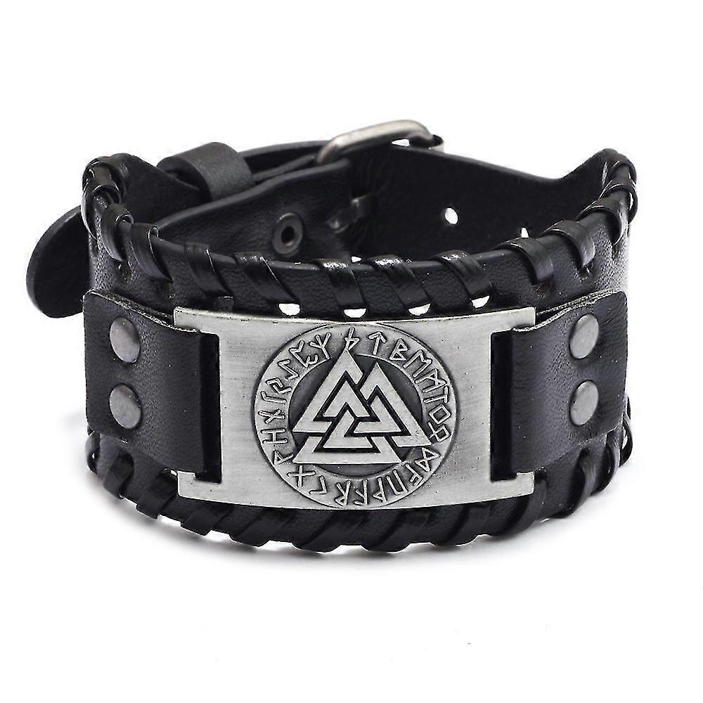 Vintage Wide Leather Woven Wolf Head Bracelet For Men Celtic Viking Compass Bracelet Jewelry Male Accessories Gifts To Boyfriend