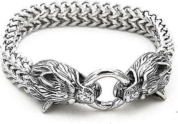 Viking Wolf Head Bracelet For Men Stainless Steel King Chain Norse Jewelry Biker Amulet Odin's Wolf Bracelets