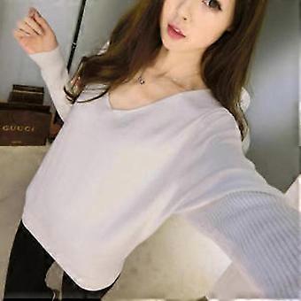 Wool Pure Cashmere Sweaters for Women Fashion Sexy V-neck Pullover Loose 100% Wool Batwing Sleeve Plus Size Knitted Tops Jumper Pullover Elasticity