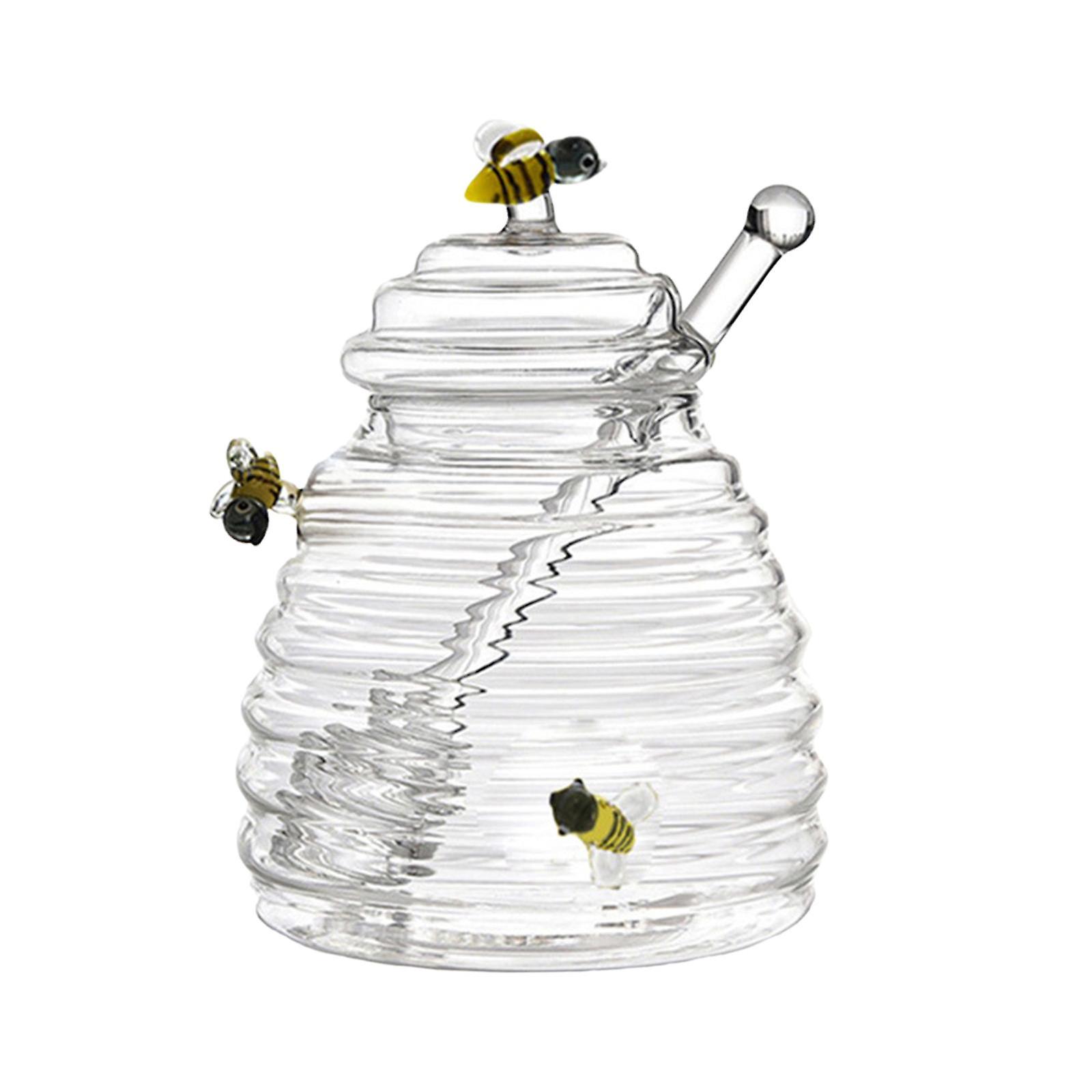 Honey Jar with Dispenser Spoon Honey Glass Pot for Home Countertop Farmhouse