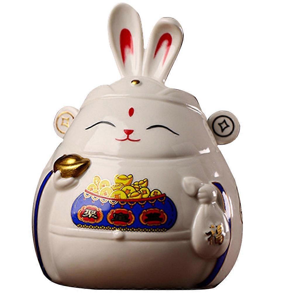 Rabbit-Shaped Saving Jar Kids Money Pot Living Room White Ceramic 1Pack