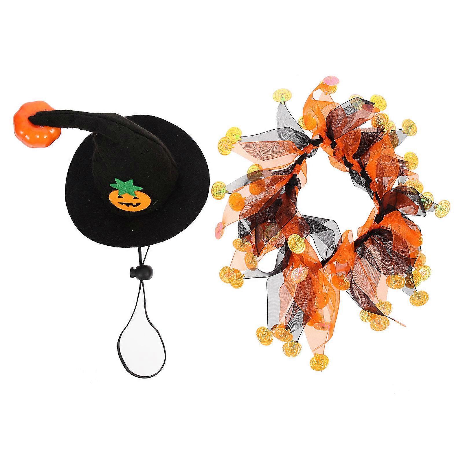 Cat Dog Scarf Halloween Pet Costume for 2Sets with Funny Cat Hat