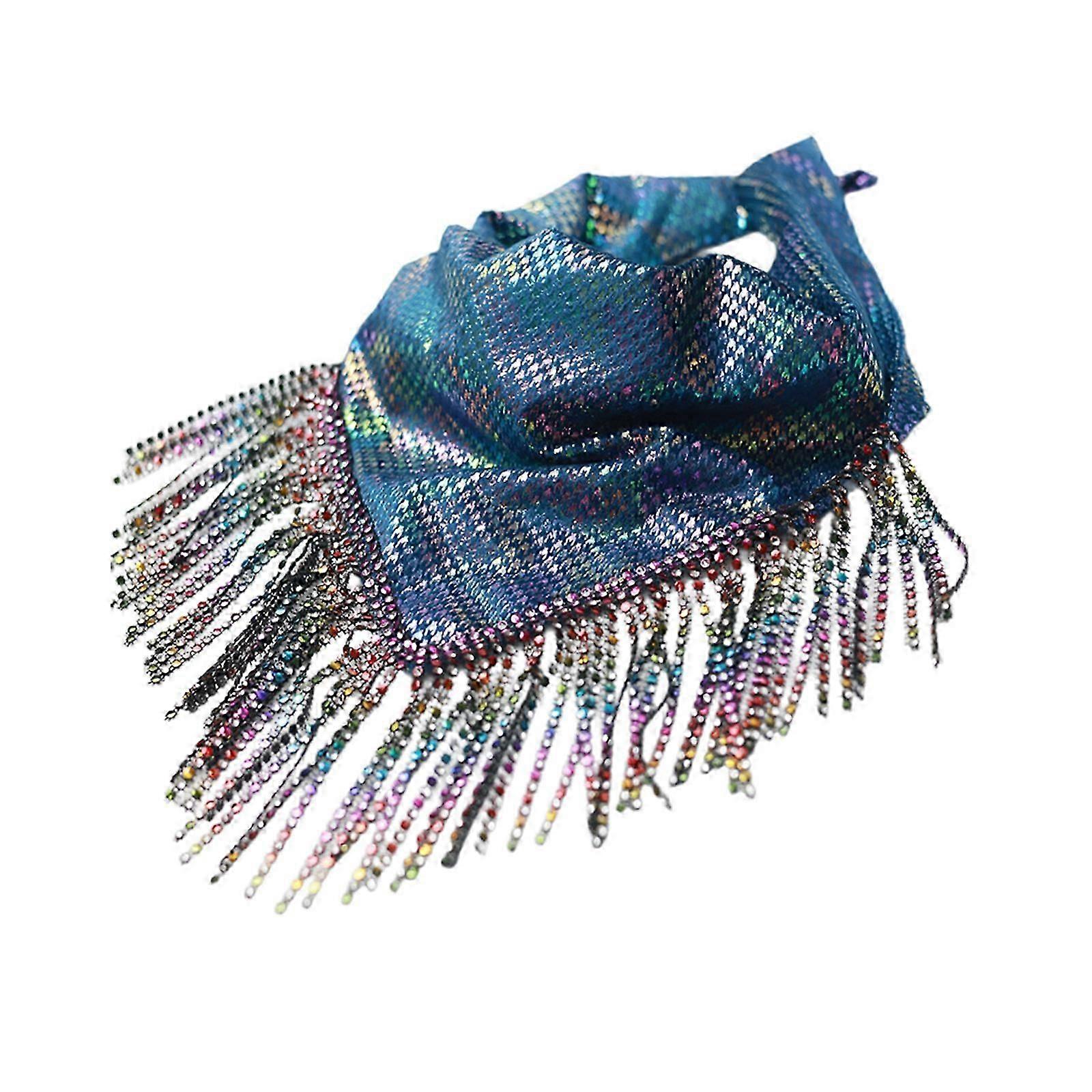 Elegant Square Scarf Bandana Rhinestones Headwrap Stylish Accessory for Women at Parties and Dance Performances Sky