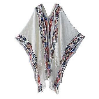 צעיף פונצ'ו בסגנון בוהמי לנשים - שכמייה אתנית קלת משקל עם גדילים לנסיעות