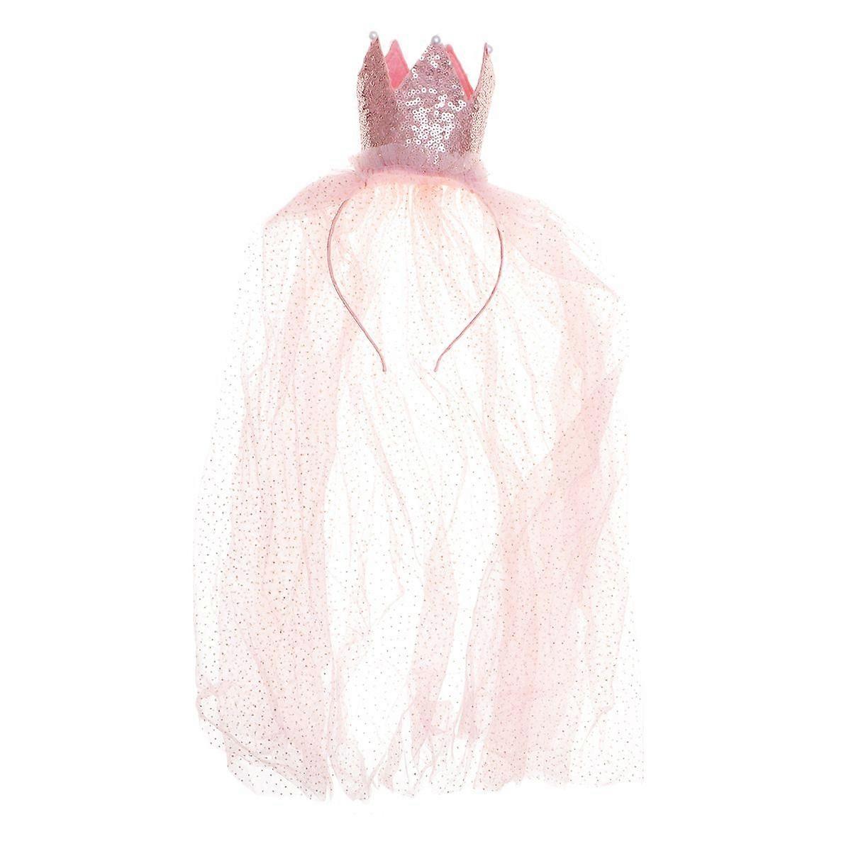 Girl Crown Veils Long Heardress Beautiful Hair Hair Accessory for Birthday (Pink Crown and Pink Veil)