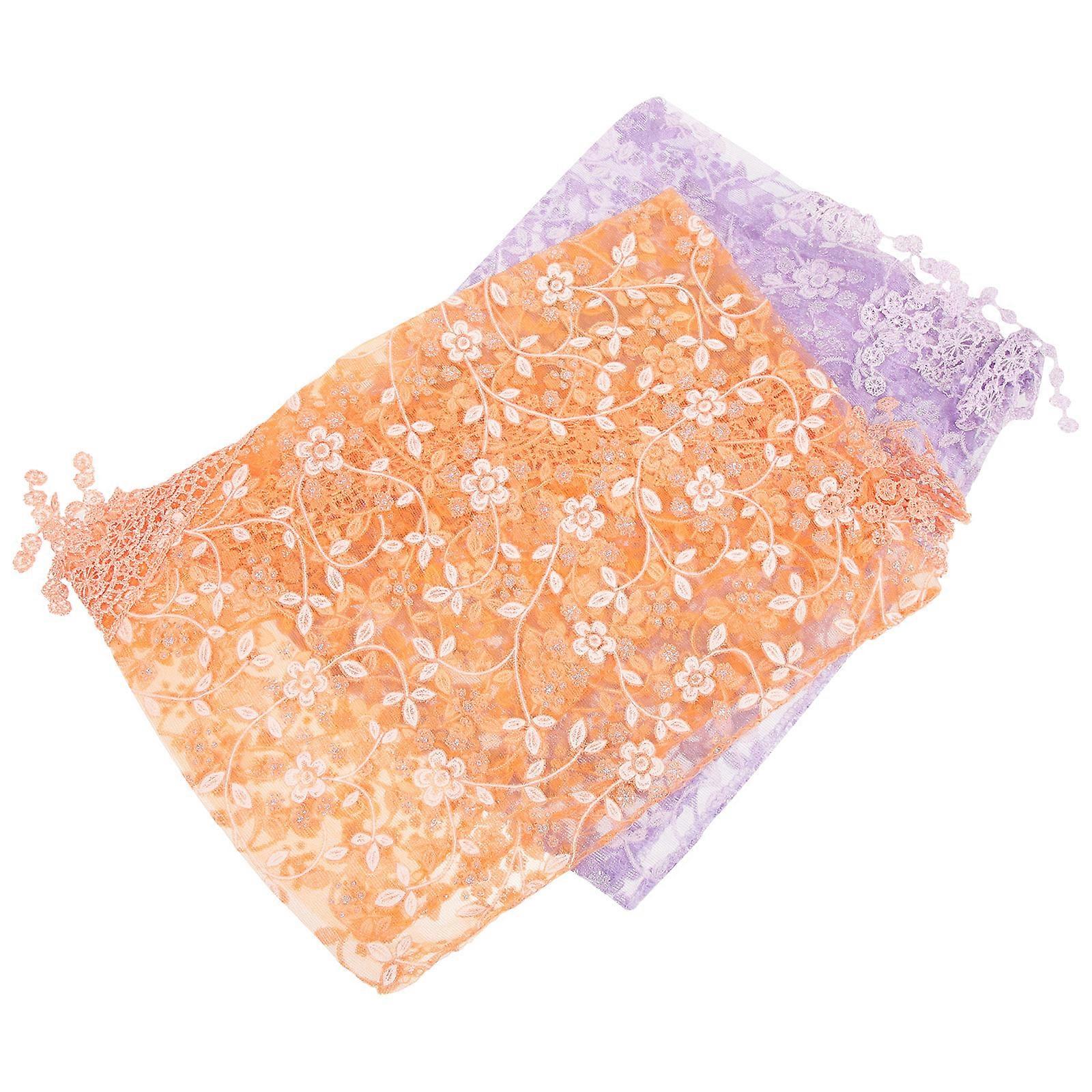 Lace Shawls Women Tassel Shawl Wrap Vintage Floral Lace Scarf Party Accessory Light Purple 2Set