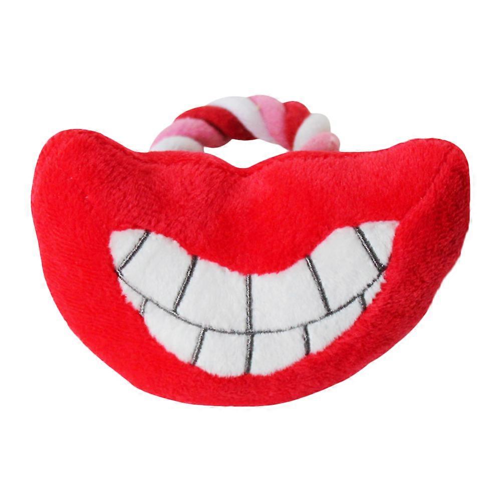 Description This item is designed as mouth shaped with a short handle which is convenient for dogs' biting and perfect as a Halloween gift. Besides, it can make a loud whistle sound that will attact dogs' attention. Therefore, it will be a funny companion for pets. Features - Color: Red.- Material: Cloth.- Size: 11x 10 x6.5cm.- Made of cloth materials, can bear most dogs' biting force.- Strong tenacity and high elasticity: durable and fit for long-term use.- Helpful to relieve dogs' stress, reducing the likelihood of their destructive behaviors occurring.- The vocal design can add more joys and enrich dogs' life.- Provide a great help for masters to launch interaction with pets.- Keep dogs away from monotonous and boring life when they are staying separately.Package list:1 x Toy