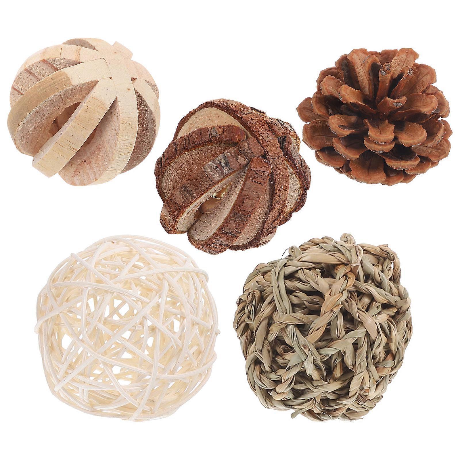Hamster Toys Chewing 5Pcs Rabbit Molar Balls For Small Rodents With Assorted Color Natural Wood Materials For Teeth Grinding
