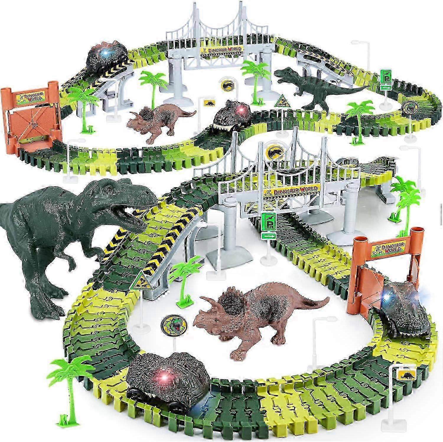 Dinosaur Toys,Create A Dinosaur World Road Race,Flexible Track Playset and 2 pcs Cool Dinosaur car for 3 4 5 6 Year & Up Old boy Girls Best Gift w