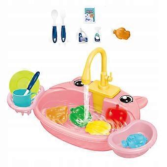 Kitchen Sink Toys With Running Water Automatic Water Cycle System Pig Pink