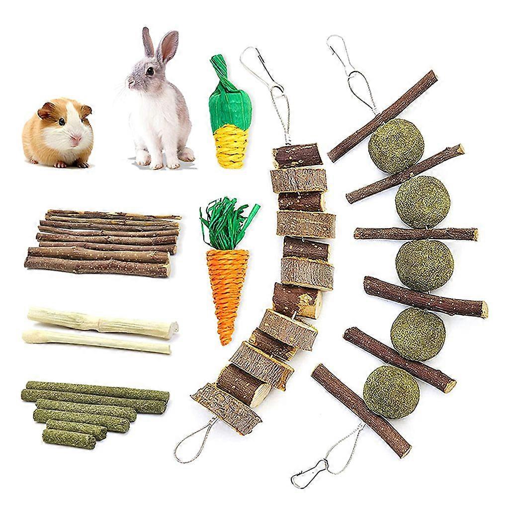 Features: brand new and high quality Natural & Handmade: All materials are natural, no industrial additives, all chew toys have a natural scent of vegetation. Improve Dental Health: Our chew toys are good for pets' teeth and can be chewed safely. Rodent pet's teeth grow constantly, so they need to grind their teeth regularly, otherwise, it will seriously affect their for health. Promote Movement & Digestion: Pendants composed of Timothy for hay balls and applewood blocks hung on the cage to promote your pet's movement. The timothy for hay provides roughage which is good for digestion. Suitable for Small Animal: Bunny chew toy will provide hours of fun for your pet while keeping their gnawing habit. Fit for guinea pig, chinchilla, squirrel, rabbit, hamster, gerbil, and other rodent species. What You Get: Timothy ball toy pendant, wood blocks toy pendant, grass carrot toy, grass corn toy, a small bundle of timothy for hay stick, sweet bamboo stick and for apple twigs. Specifications: Material: Wood, for Hay Color: As Pictures Show Size: Timothy Ball Pendant-Height Approx.10.62in Wood Blocks Pendant-Height Approx.9.84in Grass Carrot Toy-Height Approx.4.33in Grass Corn Toy-Height Approx.3.14in for Apple Twigs/Timothy for Hay Stick/Sweet Bamboo Stick-Max. Length Approx.4.92in Weight: Approx.250g Note: 1.Please allow 0-1cm error due to manual measurement. pls make sure you do not mind before you bid. 2.Due to the difference between different monitors, the picture may not reflect the actual color of the item. Thank you! Package includes: 1 Piece Timothy Ball Pendant 1 Piece Wood Blocks Pendant 1 Piece Grass Carrot Toy 1 Piece Grass Corn Toy 1 Small Bundle of Timothy for Hay Stick + Sweet Bamboo Stick + for Apple Twigs