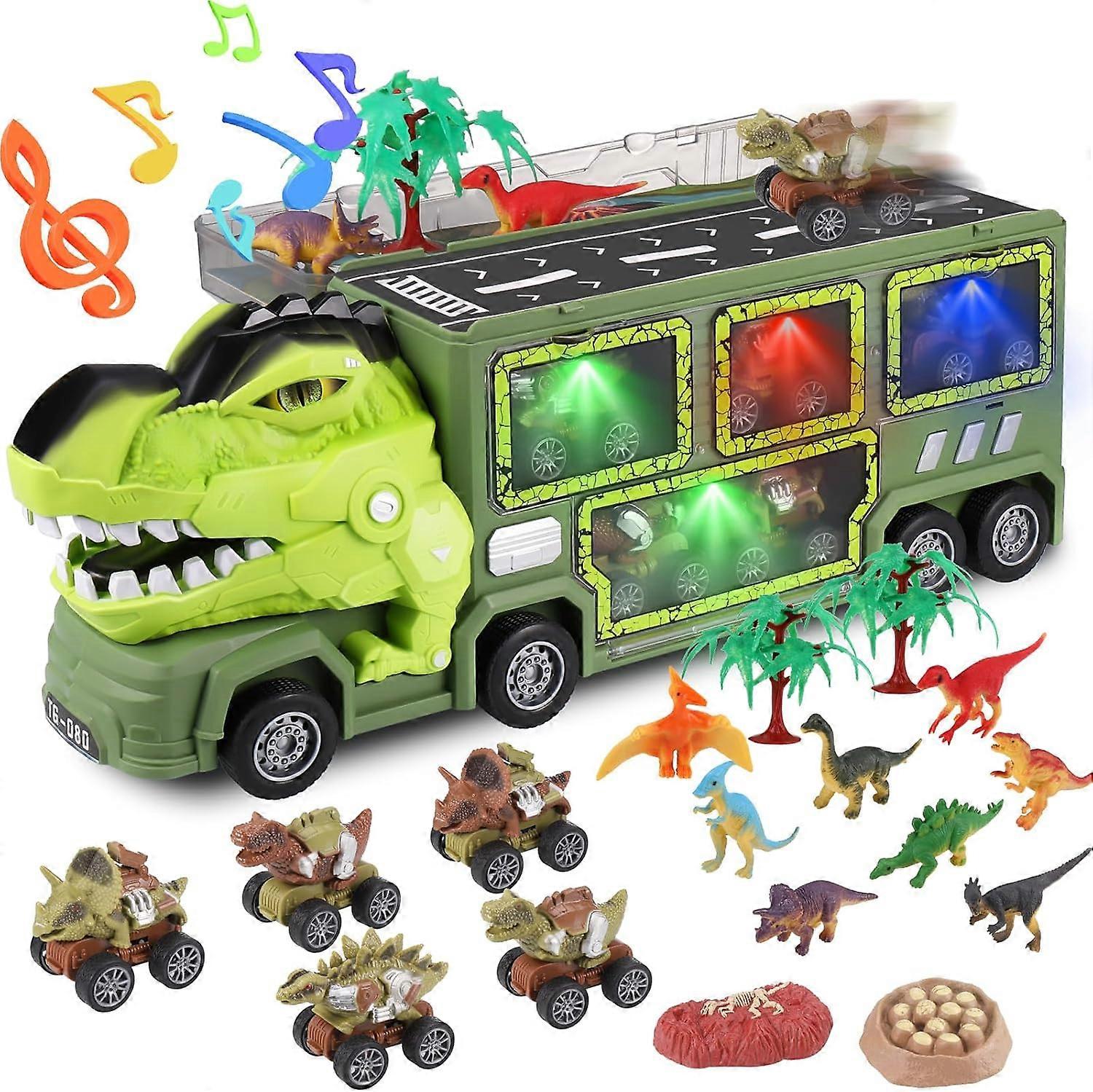 Dinosaur Truck Toys for Kids 3-7, Tyrannosaurus Transport Car Carrier Truck Toy with 9 Dino Figures, 5 Mini Dino Cars, Dinosaur Toy Christmas Birthday