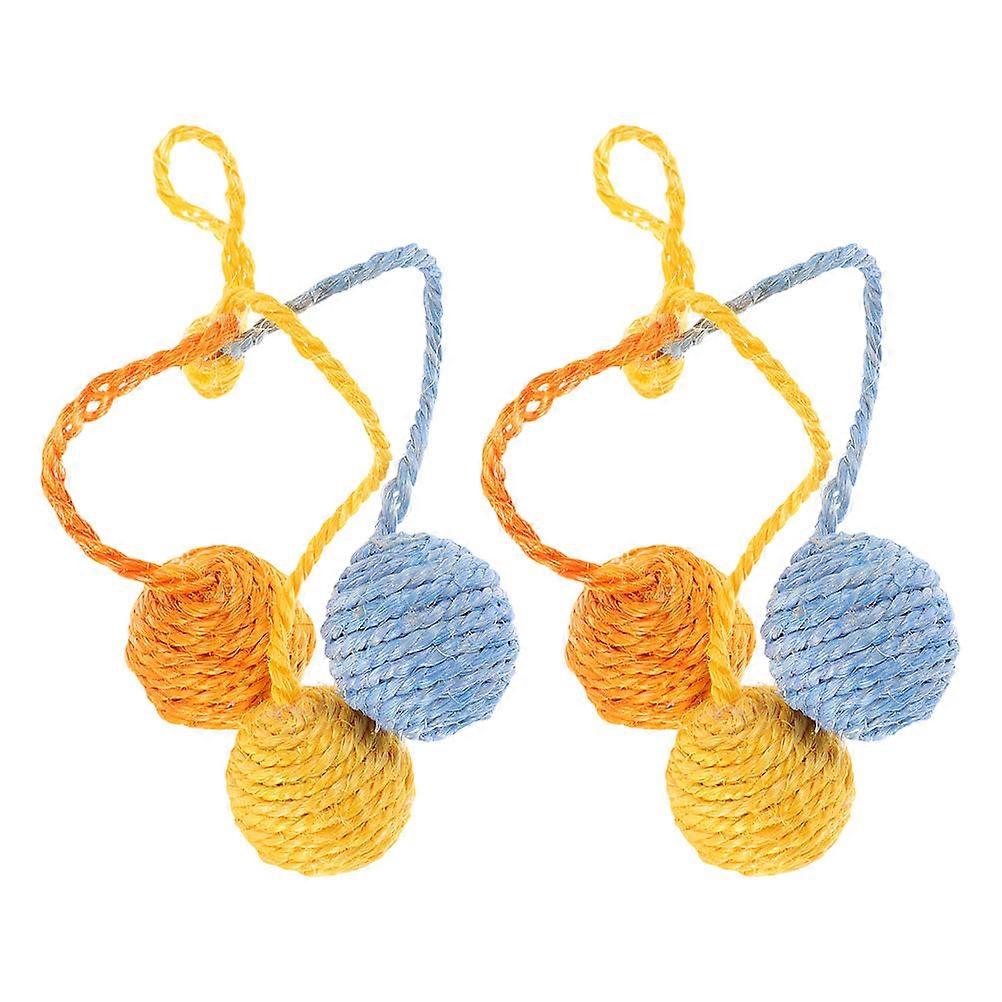 Crafted with durable sisal material, these hanging cat balls are designed to provide endless entertainment for indoor cats. The vibrant three-color design adds a playful touch, while the interactive nature of the toy encourages mental stimulation and physical activity, keeping your feline friend engaged and happy. Features -Color:Assorted Color 2 -Material:Sisal -Size:30.00X8.00X4.00cm/11.79X3.14X1.57in -Colorful design: stimulates your cat's natural hunting instincts with vibrant colors, encouraging active play and reducing boredom in indoor environments -space saving hanging design: for small apartment, the hanging feature keeps the toy accessible while saving valuable floor space -Durable sisal material: crafted from sisal rope, this toy satisfies your cat's scratching needs, protecting furniture from claw damage - Color: offers visual stimulation with three distinct colors, enhancing your cat's sensory experience and daily entertainment -Interactive and lightweight: easy to hang and use, promoting bonding moments between you and your pet through engaging playtime activities Package list: 3 pcs x 2pcs x sisal ball cat toys