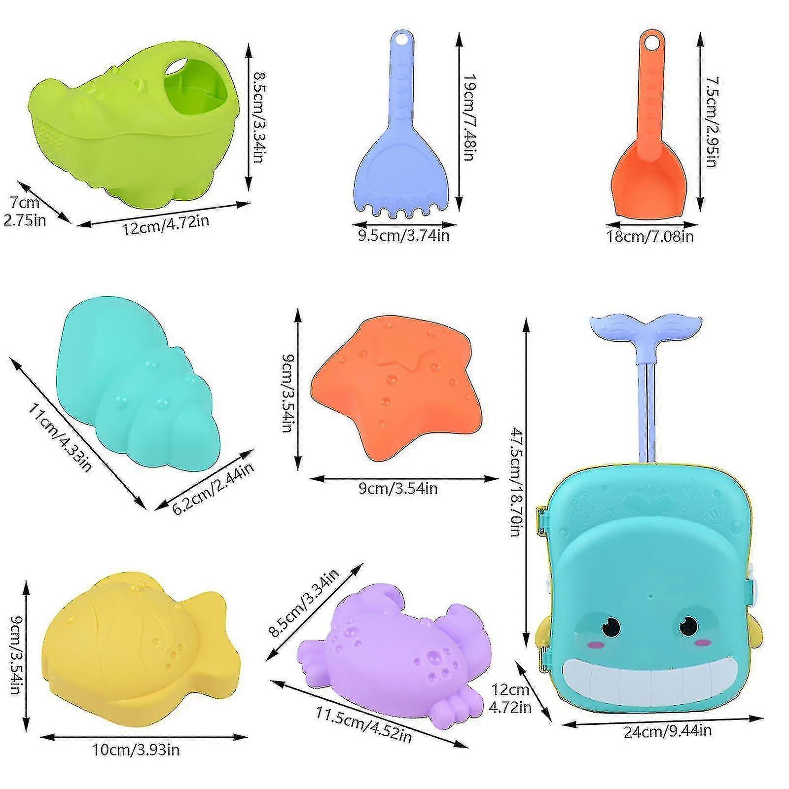 New Children's Summer Beach Toy Set Luggage Trolley Case Summer Sand Shovel 8pc