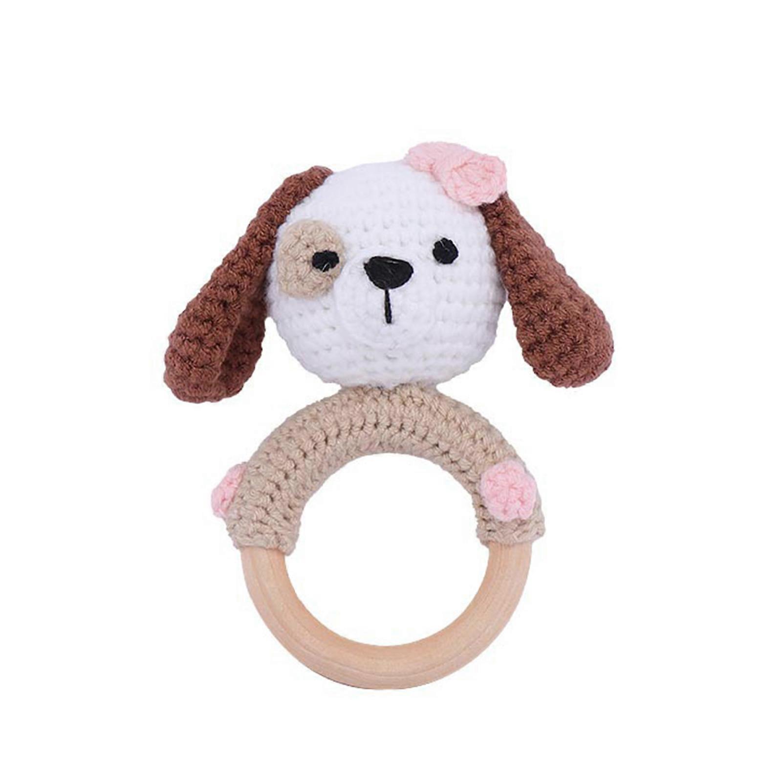 Newborn Educational Toy Baby Rattles Crochet Rattle Toy Toddlers Teether Wooden Teething Ring Rattle Natural Baby Toy puppy