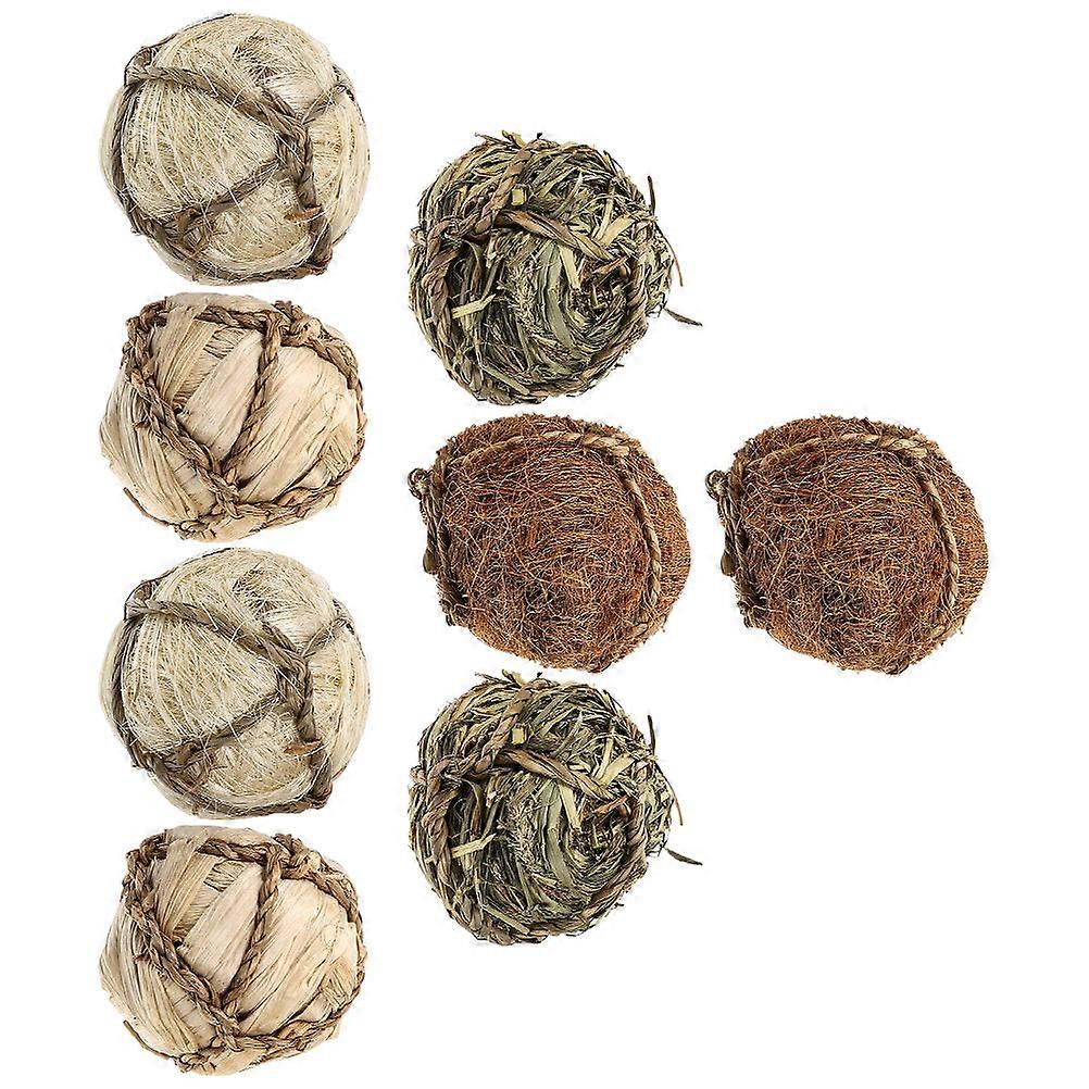These hamster biting toys are not hamster chew toys, but also useful teeth grinding tools. To ensure the healthy growth of your small pet's teeth, take full care of your pet, such as rabbits, guinea pigs, hamsters, mice, small birds and other small pets. Add a unique teething supply to your pet's home while giving them something fun to play with. Features -Color:Assorted Color -Material:Water plants -Size:7.00X7.00X7.00cm/2.75X2.75X2.75in -Made of premium and natural water plants material, with the natural grass attract the small animals' attention. -Guinea Pig Chew Toys for chewing and teething rabbit toys. Improve your pet's dental health while playing. -This toy is a great way to your shoes and furniture from being chewed on by your pet and change their bad chewing behavior. -Provide your little pet with a fun companion and chew toy for when they are alone and bring more fun into their daily lives. -Made of water plant and hard to chew. Exquisitely detailed, this rabbit molar toy promotes fun and exercise. Package list: 8 x Hamster Toys