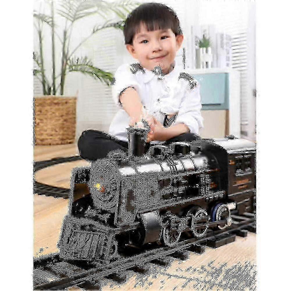 Electric Road Model Toy, Steam Locomotive Charging Train Set With Realistic Train Sound Lights And Smoke Black, Type A(EPA02)