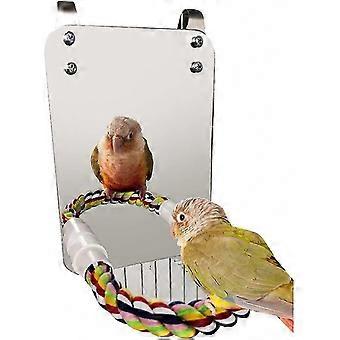 צעצוע מראה תוכי עם מוט חבל, מראה גדולה ומוט טופר לכלוב ציפורים