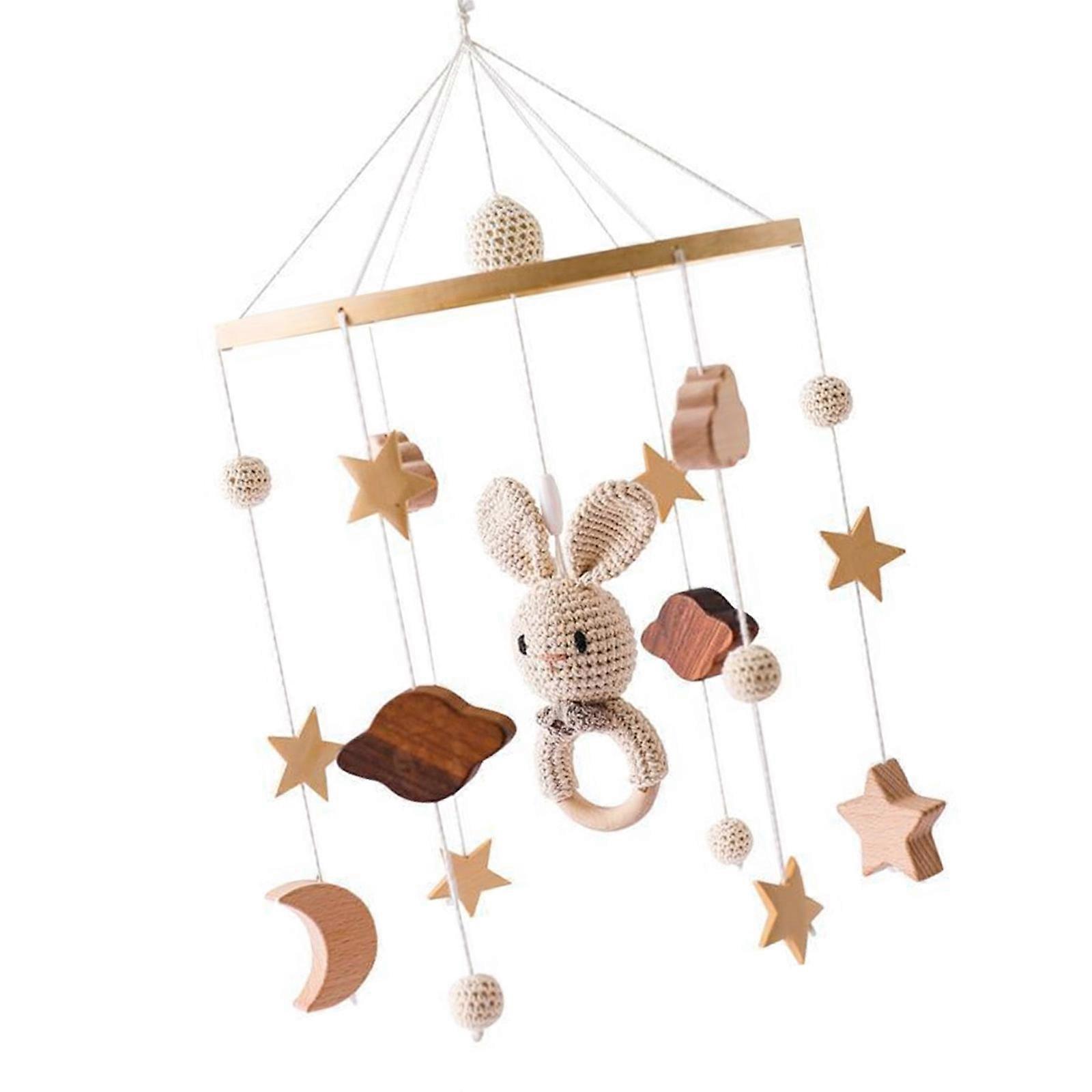 Wooden Crochet Animal Crib Mobile Toy With Teething Rattle Design For Baby Sensory Development And Nursery Decoration Multicolor