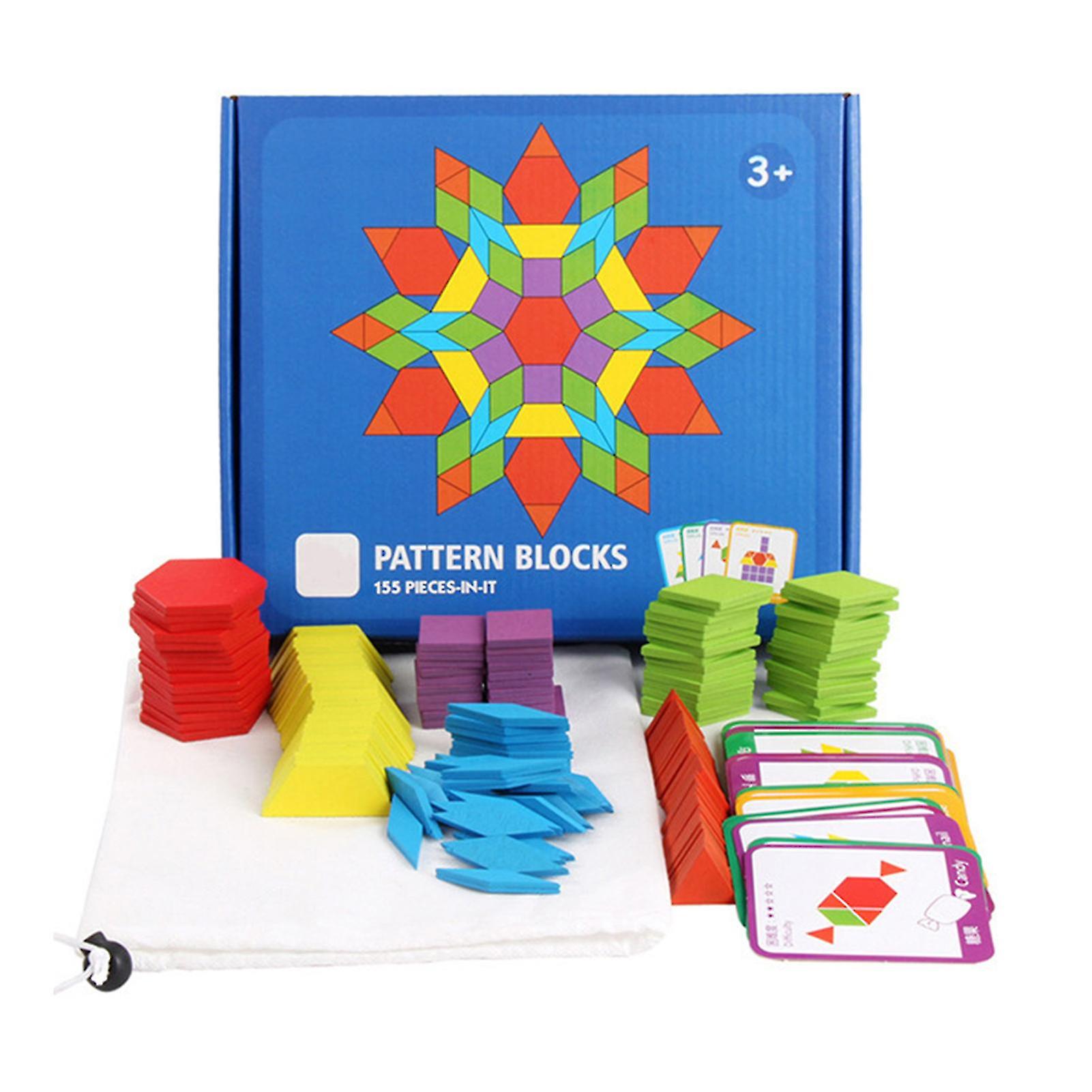 Geometric Shapes: This wooden puzzle toy features various shapes and bright colors, designed for early education learning. Educational Game: Suitable for children ages 3-6, it helps improve hand-eye coordination and imagination. Blocks Quantity: Includes 155 wooden blocks of different shapes, allowing children to create various patterns. Comes with a storage bag for easy portability. Great Gifts: Ideal as a gift for boys and girls on occasions like Christmas, Children's Day, Easter, and birthdays. Wood Material: Made of sturdy and safe wood with a smooth surface, ensuring durability and safety for children.