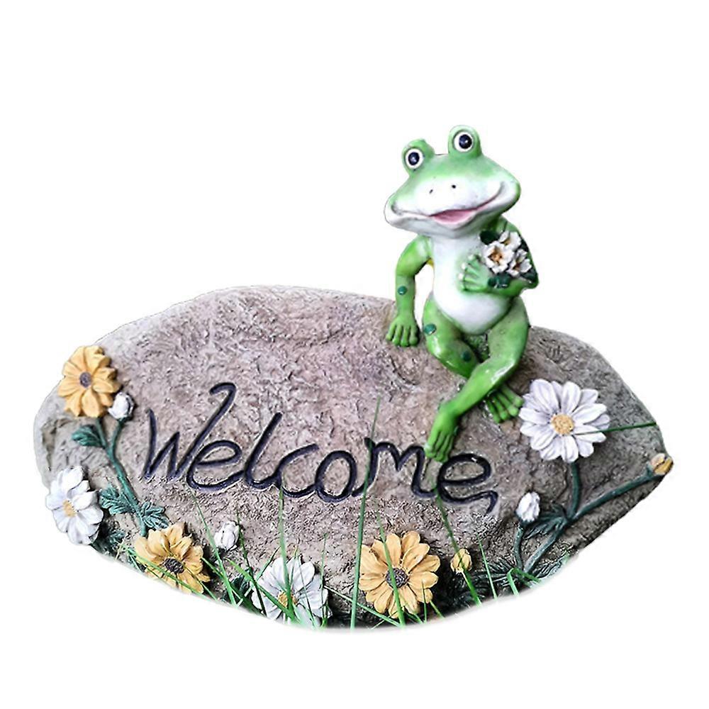 Frog Statue Stone Welcome Sign Sculpture Home Indoor Outdoor Garden Decoration