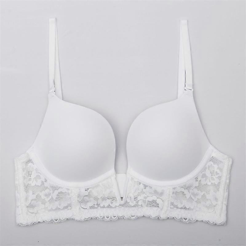 French Sexy Bra Deep V Seamless Underwear Women Lace Embroidery Push Up Bras Summer Detachable Strap Backless Brassiere