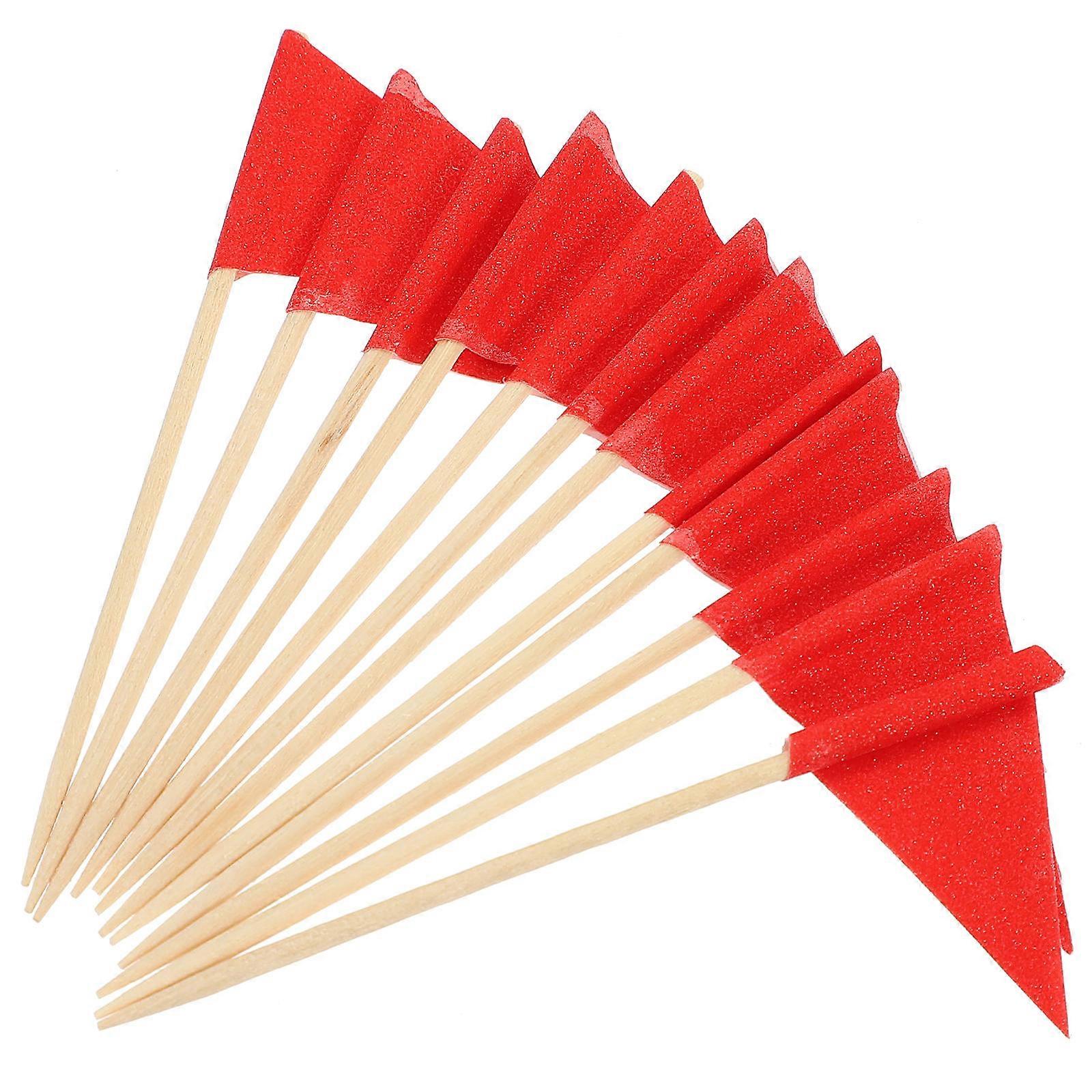 Cupcake Toppers Flag Toothpick Red Triangle For Party Supplies Fruit Salad Cocktail Sticks 12Pcs