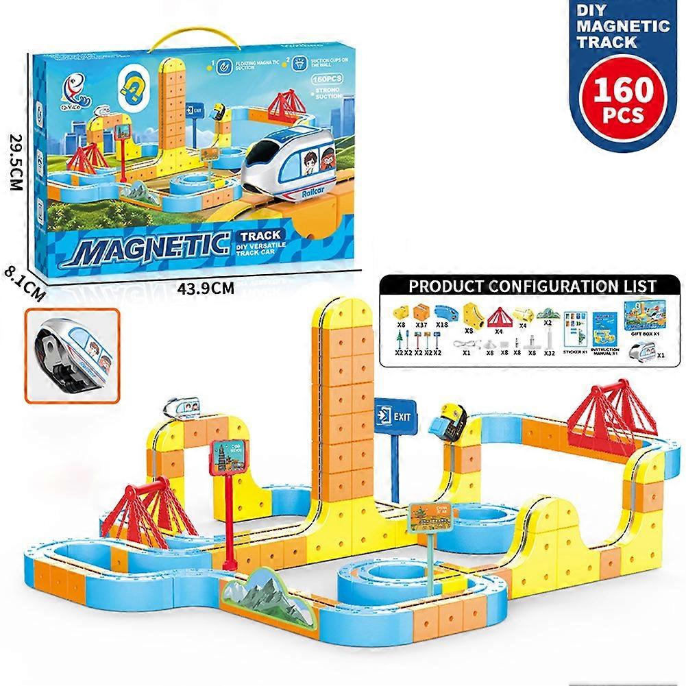 2025 New Magic Track Cube & Klick Rail Electric Train Set, 160PCS Flexible Race Track, Gravity-Defying 3D STEM Learning Toy for Kids Gift