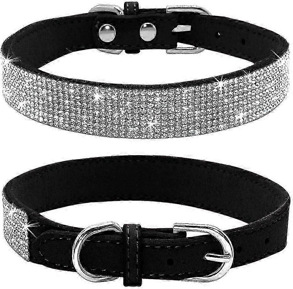 Rhinestone Dog Collar, Cute Dazzling Sparkling Soft Suede Leather Dog Cat Rhinestone Collar Crystal Diamond Pet Dog Puppy Collar (xs, Black)