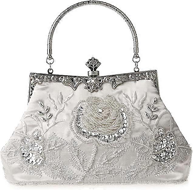 Kongque Vintage Floral Beaded Rhinestone Embroidery Clutch Sequin Wedding Party Prom Bag Bridal Ladies Crossbody Evening Handbag
