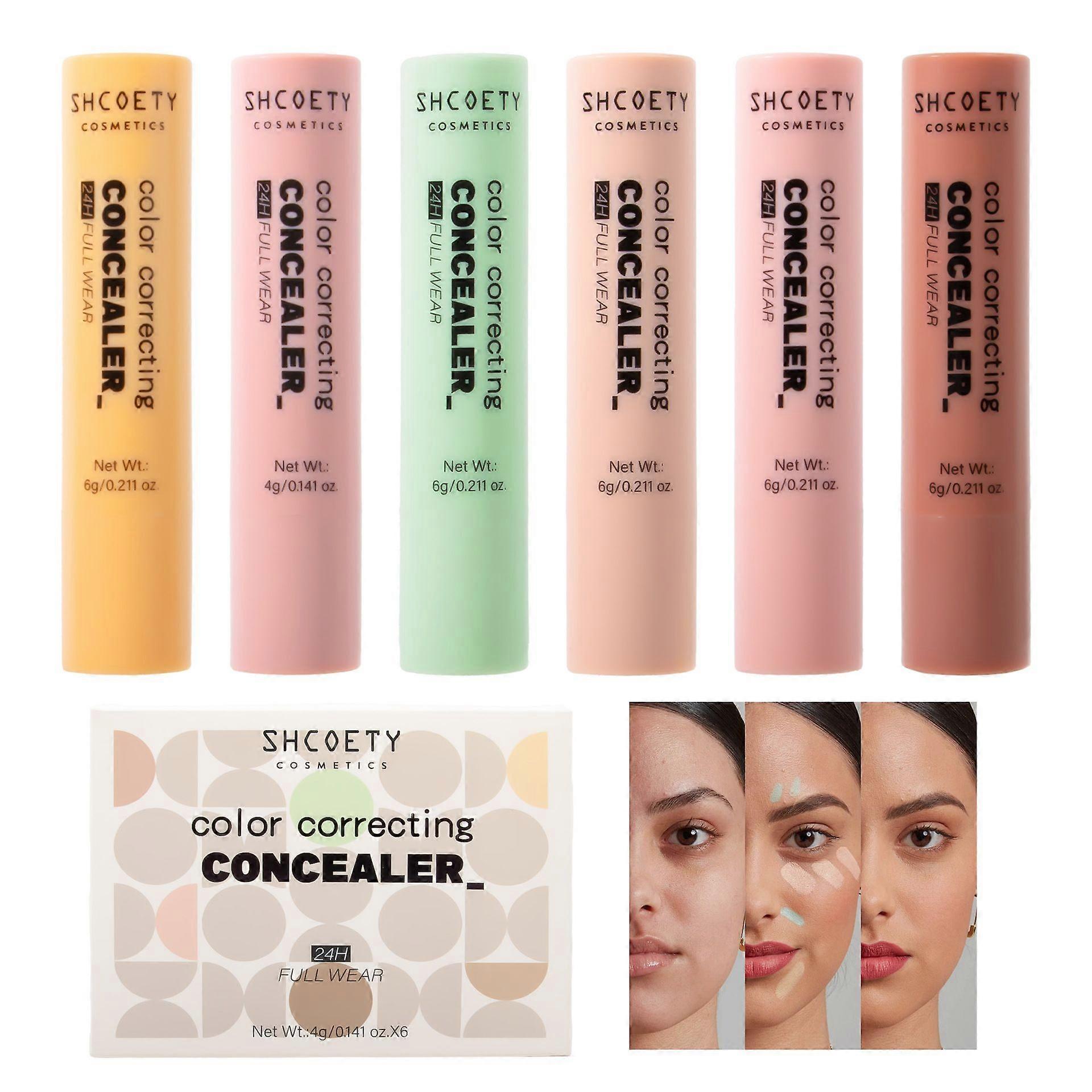 Cover Stick Concealer, 6 Color Facial Concealer, Smudge Proof Lightweight Make Up Cosmetics, Long Lasting Neutralizer for Natural Finish, Skin, Blemis