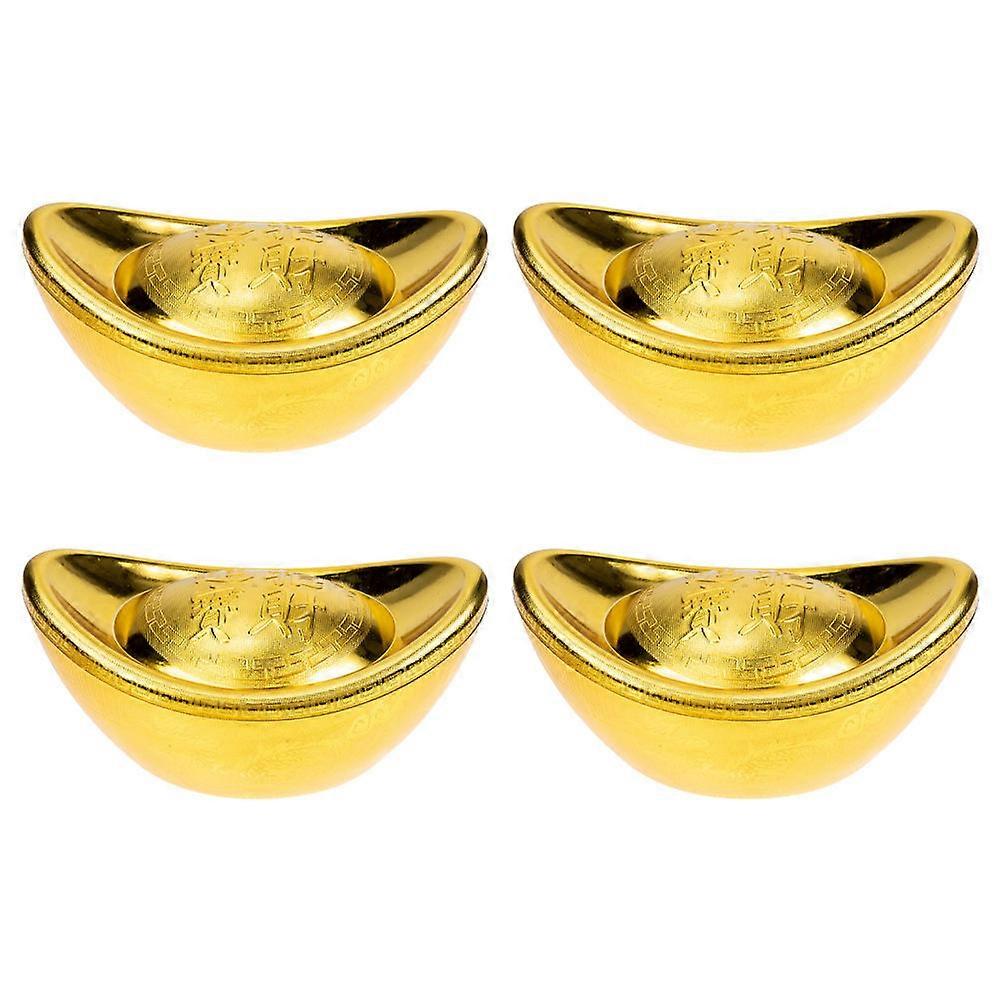 Festive Ingot Shaped Box Simulated Ingot Boxes Chinese New Year Candy Storage Golden 14.50X7.80X6.00CM Decorative Item 4Pcs