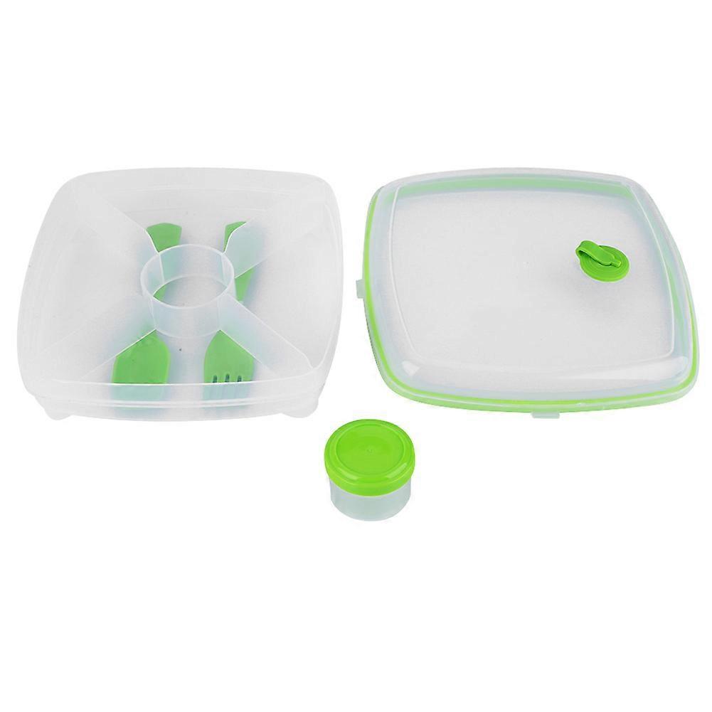 Outdoor Plastic Lunch Box Picnic Food Fruit Container With Knife Fork Microwave (Green)