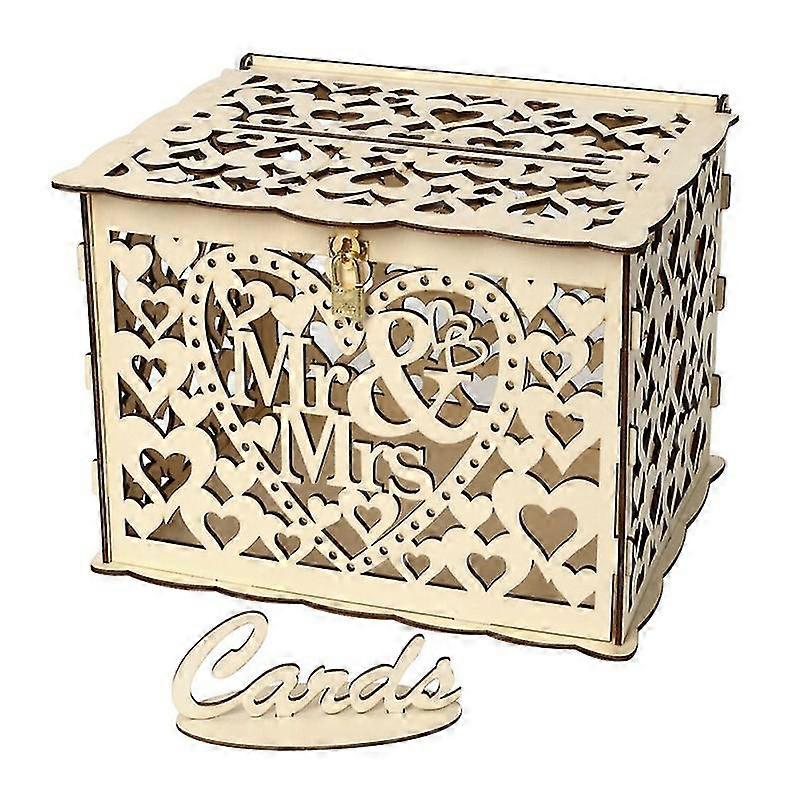 Wood Wedding Storage Box Mr & Mrs Flower Box For Wedding Party Gathering (one Key, 12 Rubber Rings, Small Size)